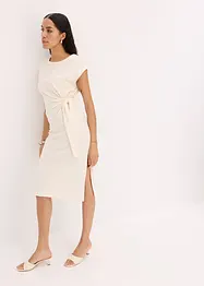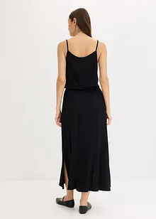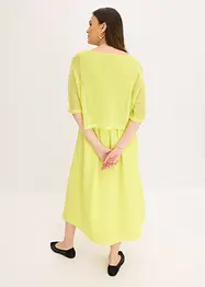 Maxiklänning i linne med hålmönster i halsringningen och slits i sidan