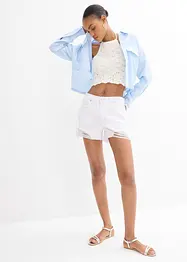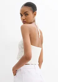 Stickad, ärmlös topp med hålmönster och Lurexgarn