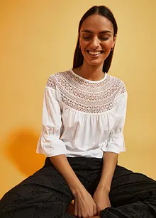 Mönstrad topp med rund halsringning, ekologisk bomull
