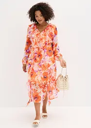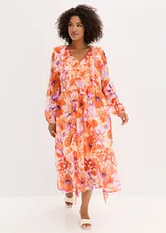 Mellanlång klänning av lätt chiffong med spetsöverdel