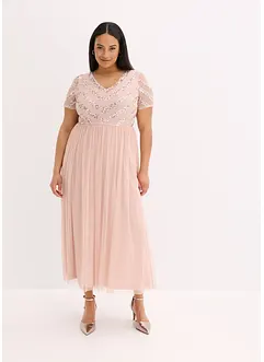 Klänning i maxilängd av tunn tyll med paljettbroderi