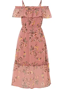 Blommig mellanlång klänning med volanger