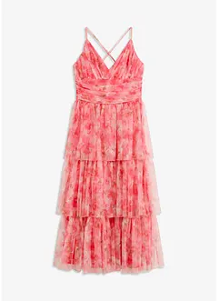 Mellanlång virkad klänning med omlottlook och halvlånga ärmar