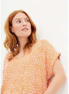 Avslappnad topp i flamgarn med rundad nederkant i ekologisk bomull