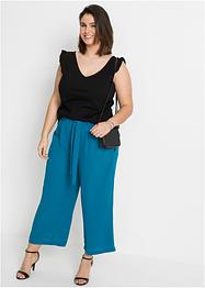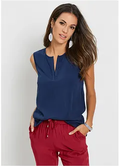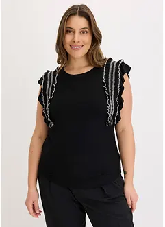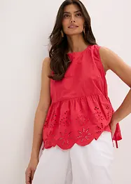 Stickad, ärmlös topp med hålmönster och Lurexgarn