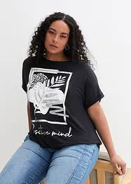 Lång t-shirt med tryck i mjuk viskosmix
