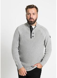 Melerad tröja i bomullsmix med krage och dragkedja
