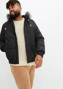 Vadderad parkas med påsydda fickor och avtagbar huva