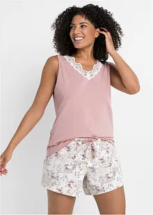 Pyjamas med ribbad topp och flanellbyxa med glittrande trådar