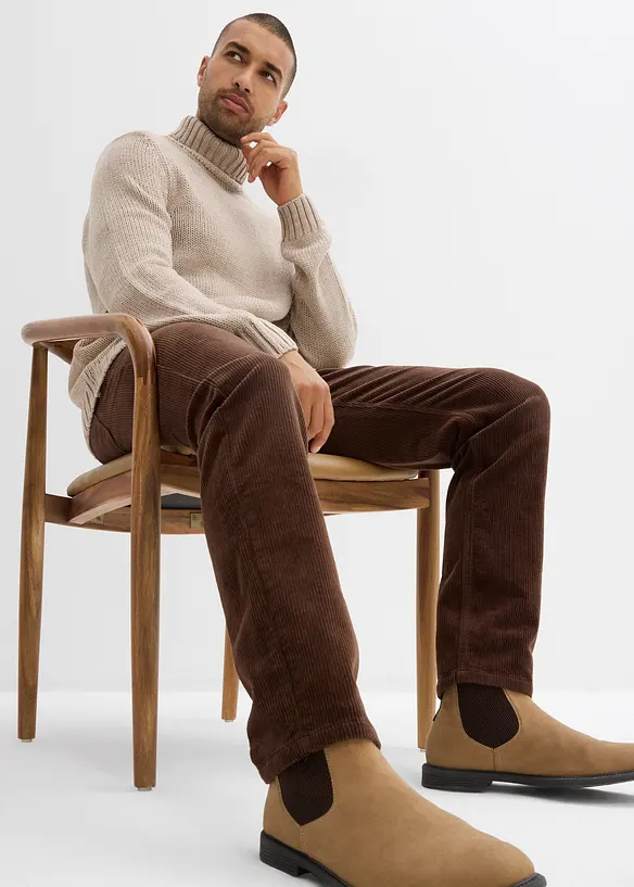 Moderiktig manchesterbyxa med stretchandel och vintagelook
